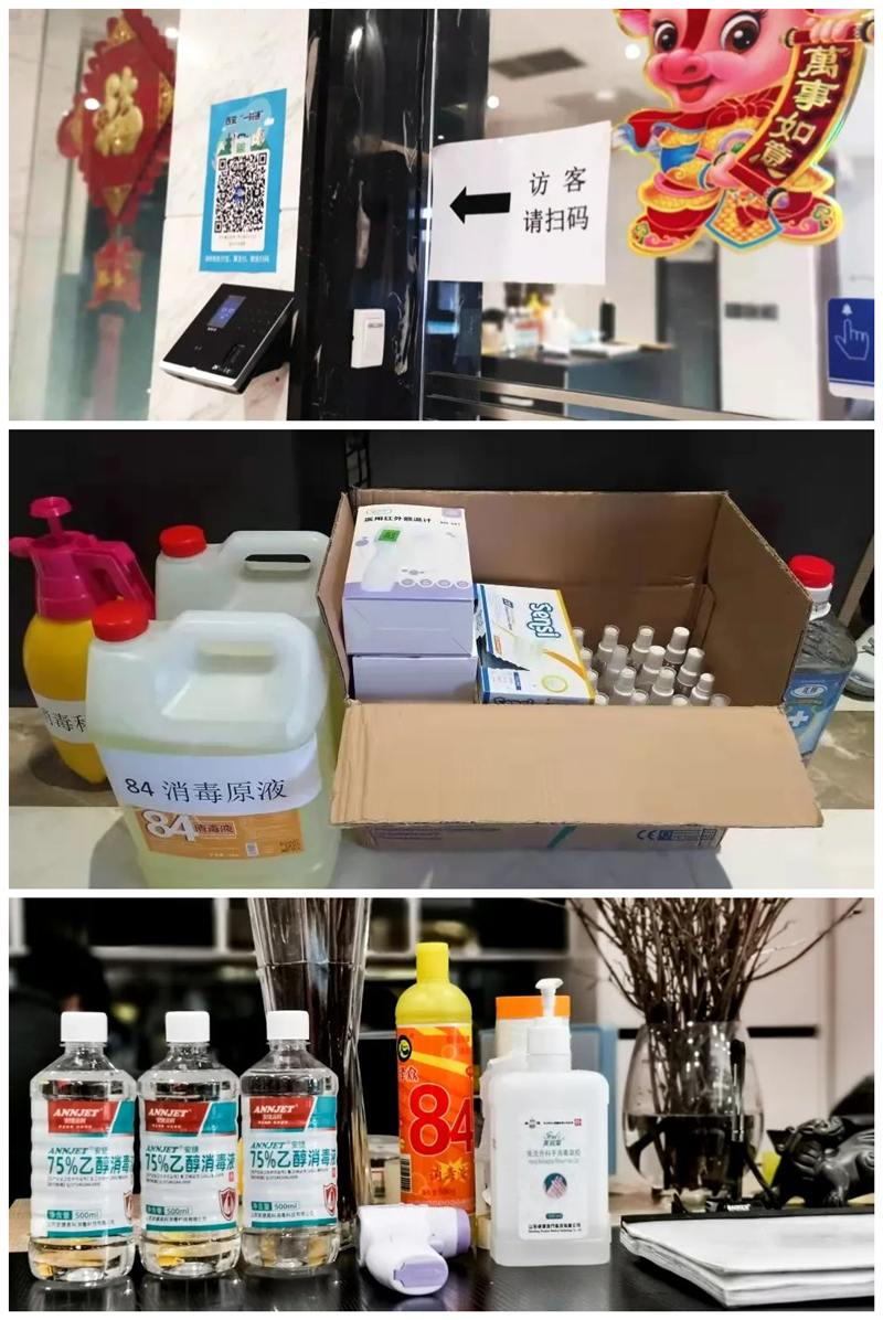 復工期間我司準備了足夠的醫用口罩、酒精、消毒液、體溫計等防疫物資以備疫情防控使用;在崗期間做好人員健康監測,嚴格按照疫情防控方案做好防疫工作。