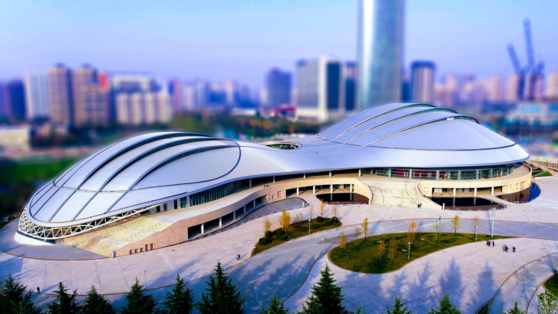 陜西奧體中心體育館位于陜西奧林匹克體育中心東北部,東臨唐延路,北接唐遺址公園,場館占地86603.6㎡,觀眾總坐席7048座,總建筑面積72450㎡,幕墻形式分為:大跨度曲面弧鋼鋁復合玻璃幕墻、異形鋁板幕墻、鎧甲式疊鋪石材幕墻、異形電動排煙窗等。陜西奧體中心體育館,屬于大型綜合性體育場館,其新穎的造型飄逸靈動,猶如大唐樂舞的絲帶,是陜西一張靚麗的“體育名片”。