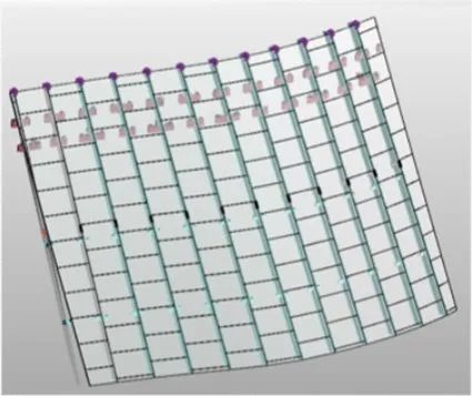 幕墻建筑多為曲面,定位復雜,幕墻立面與球形屋面交接部位高低起伏大且非規則形狀;屋面網架結構跨度較大,風壓作用變形對立面幕墻影響大;曲線形狀且平面尺度大、收邊收口多。