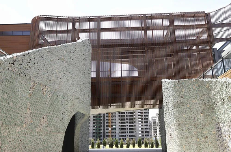 由我公司承建的孫思邈紀念館外裝飾工程,主要有:干掛陶磚墻;干掛式砌筑陶磚墻;斷橋玻璃幕墻;異形倒椎體鋼構斷熱幕墻;異形鋁板幕墻;石材幕墻;鋼構采光頂等外裝形式。