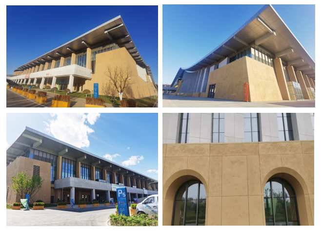 本項目幕墻工程施工范圍包含輕型混凝土掛板幕墻、玻璃幕墻、鋁合金裝飾格柵等。其中幕墻工程包含了西北首個大體量開縫式仿砂巖藝術混凝土幕墻、清水混凝土幕墻等多項工藝難點(該項目多項新工藝、新技術、實用新型已成功申請專利)。
